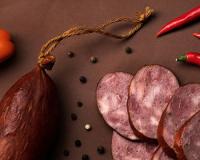 Наша мраморная колбаса, изготовленная только из высших сортов говядины и мяса наших биобройлеров, дополнена смесью душистого перца и солей. На финальных этапах изготовления она проходит один цикл копчения на натуральной вишнёвой щепе. Выпускается этот сорт как в натуральной, так и в искусственной оболочке.
