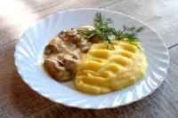 — Индейка в сливочном соусе с грибами с картофельным пюре