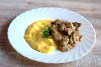 Печень по-строгановски с картофельным пюре купить в Москве по доступным ценам