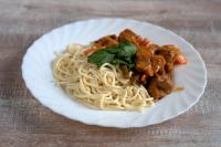 Свинина тушеная с овощами и спагетти купить в Москве по доступным ценам