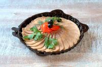 Язык говяжий отварной со сливочным хреном.
